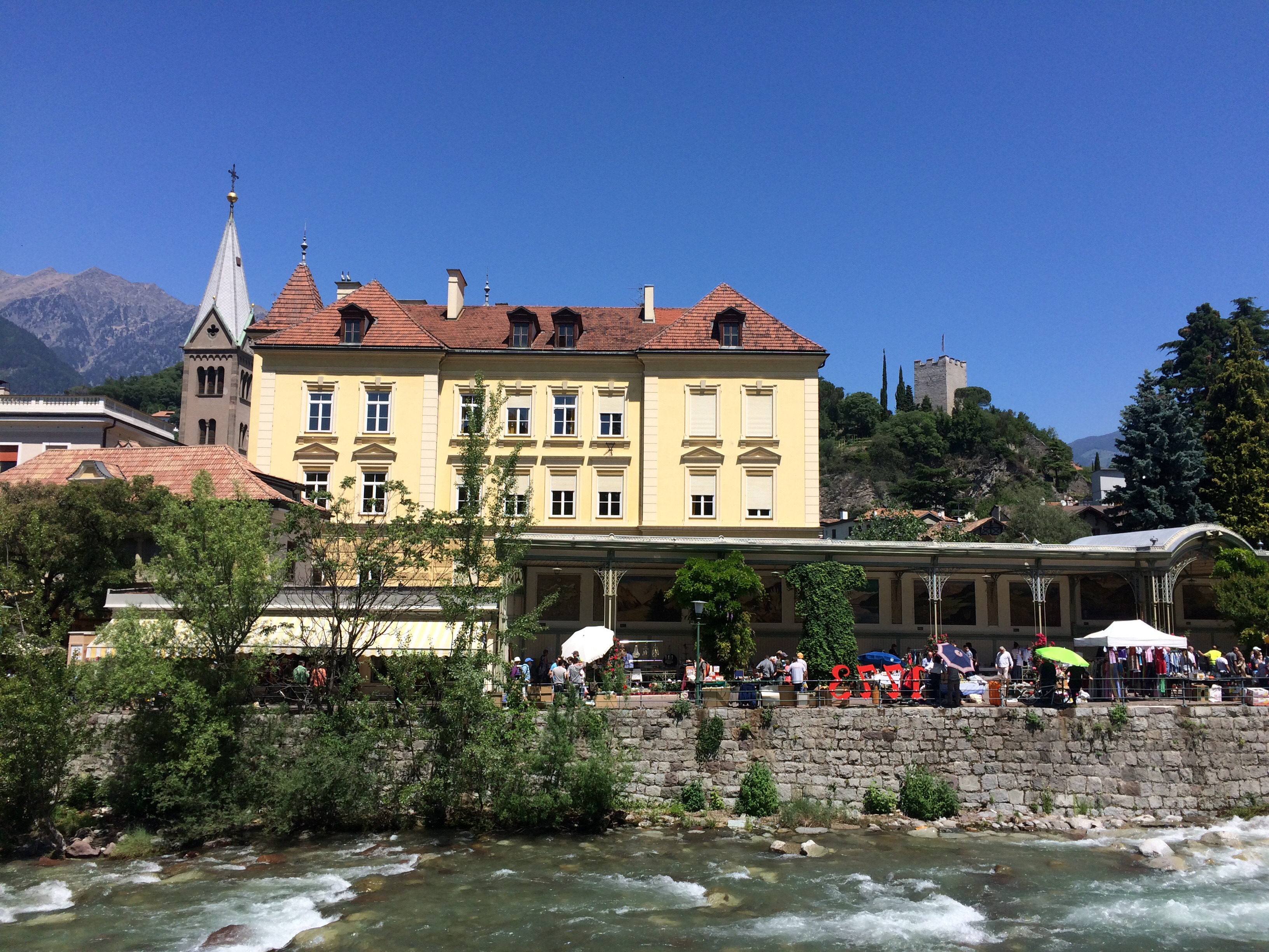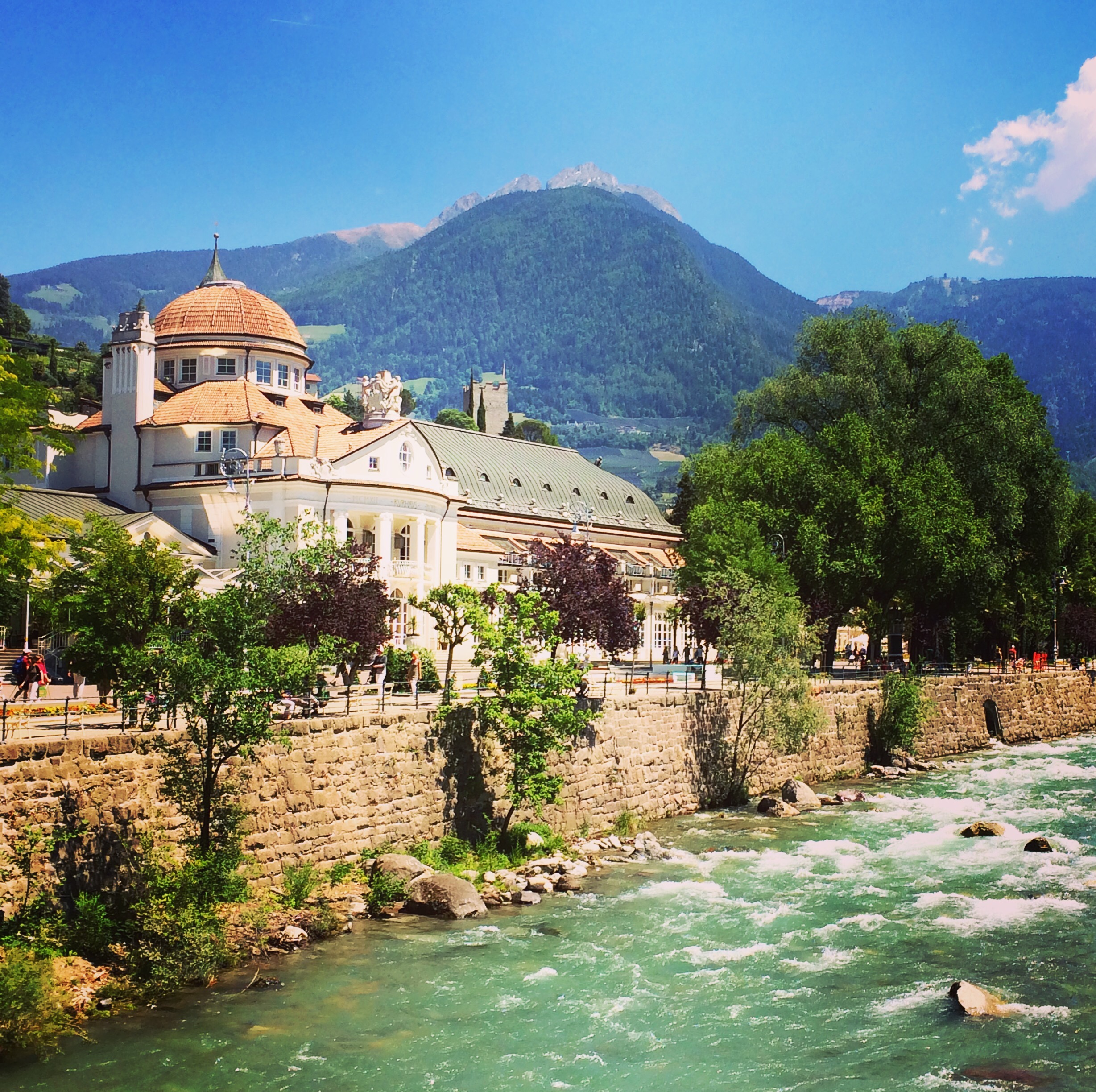 Merano é una bella città termale, con un clima mediterraneo, nonostante sia circondata da monti, e possiede un centro storico molto elegante con ampi viali e edifici in stile liberty.